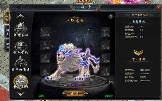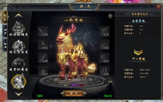 战宠激活需要消耗对应的宠物碎片,激活宠物后,即可对该战宠进行养成