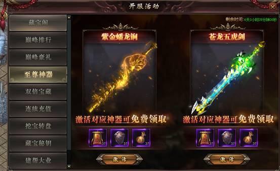规则:开服7天内,激活极品神器和免费领取海量战纹,迅速建立优势。
