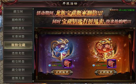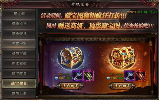 规则:开服7天内,可购买海量优惠藏宝秘钥,稀有珍品都在里头,不容错过!