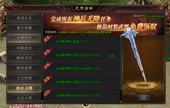 规则:活动期间,玩家完成所有神兵天降任务,可免费领取庆典限定武器皮肤一把。