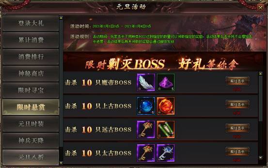 规则:根据击杀对应阶段的BOSS数量领取奖励